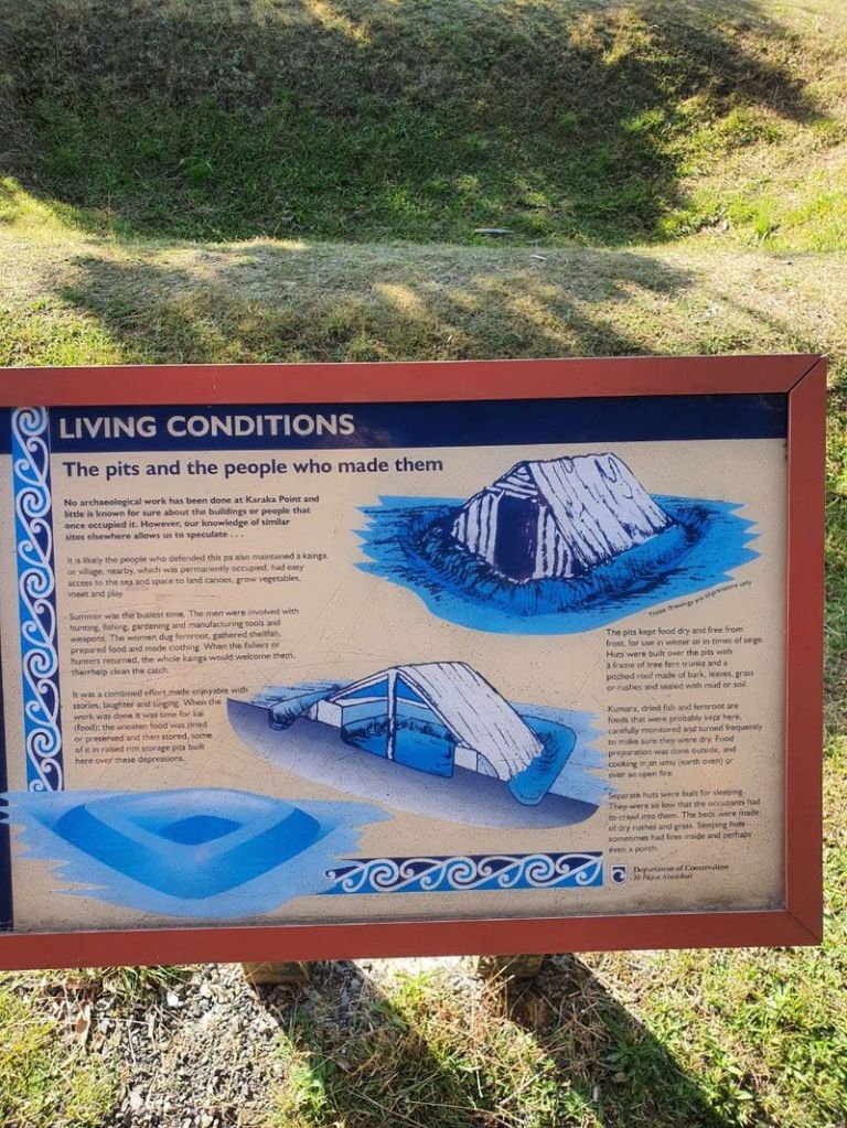 när vi gick på den här vandringen (max 10 minuter tog det att ta sig till toppen) gick vi förbi dessa utgrävningar. det visar sig att förr i tiden när maoris bodde här så utformade de såna här gropar för att sedan bygga deras hyttor i. coolt!